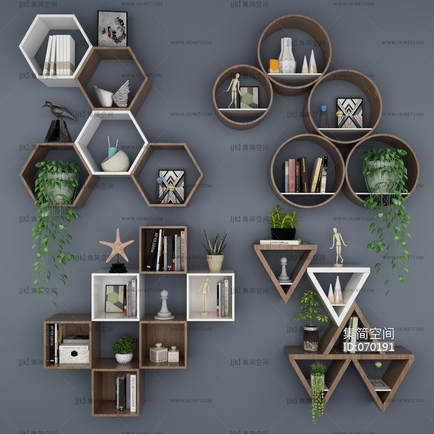 现代展示柜_装饰柜_手办柜玻璃书柜3D模型3d模型下载