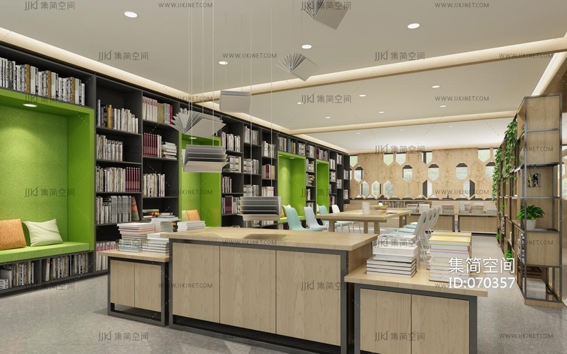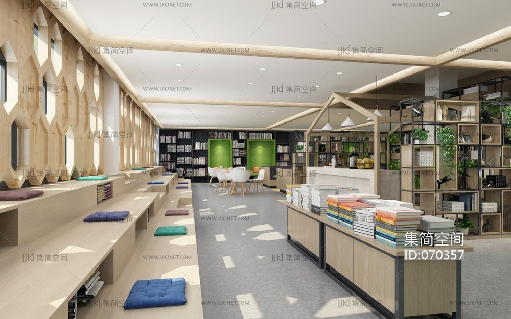 现代书吧图书馆,书店,阅读区,3d模型下载