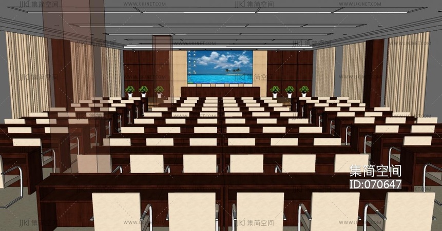 09大会议室报告厅长条会议桌 su草图模型下载 [模型ID:70647]