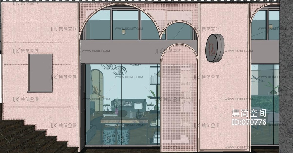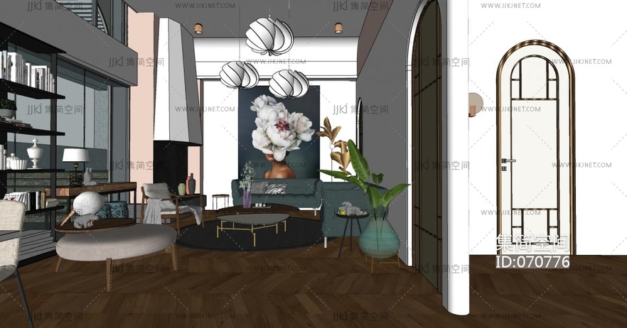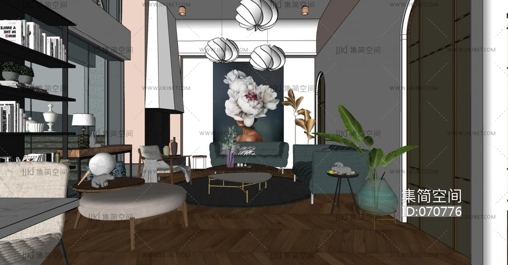 08现代办公休息区,异形公共座椅 (1)su草图模型下载