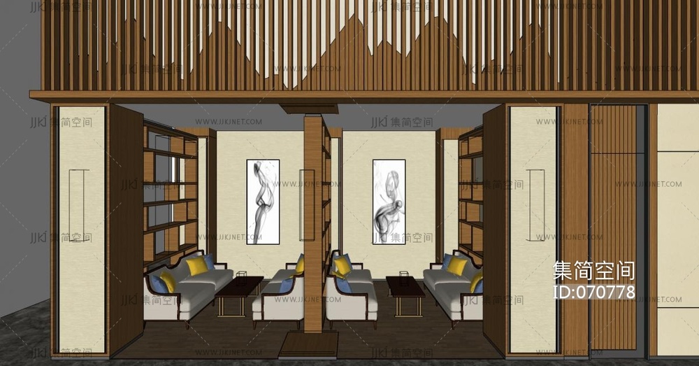 新中式大堂休息区su草图模型下载