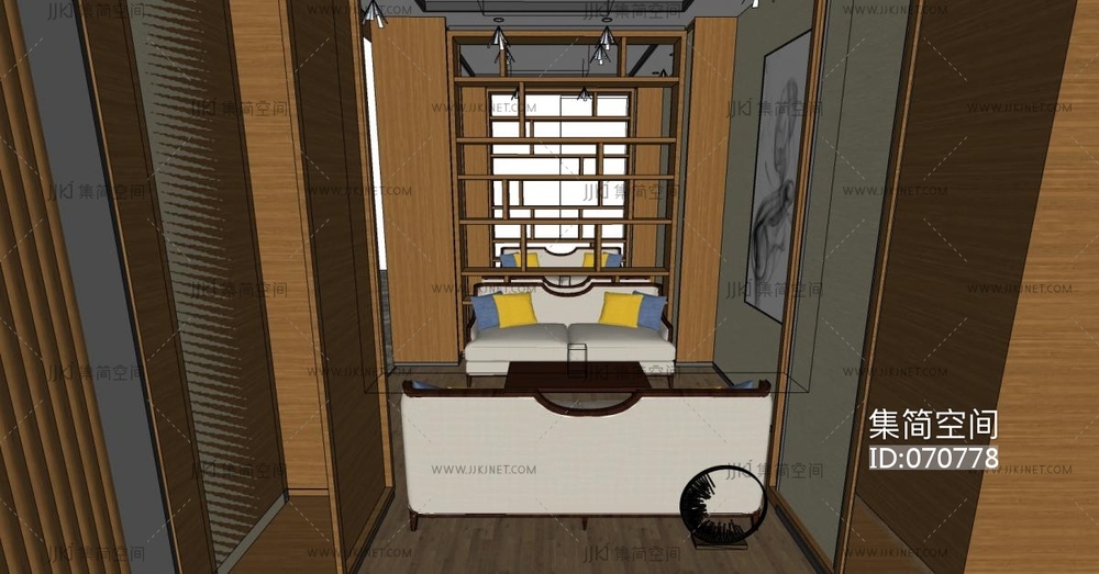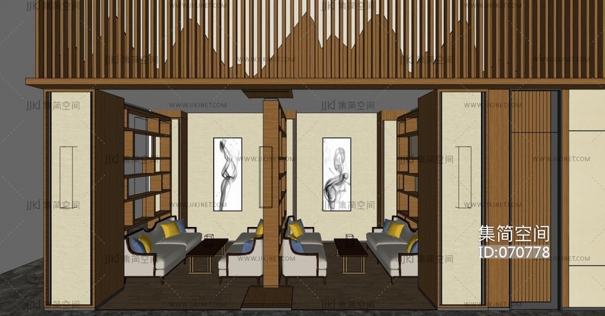 新中式休息区su草图模型下载