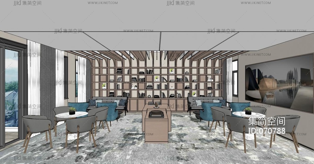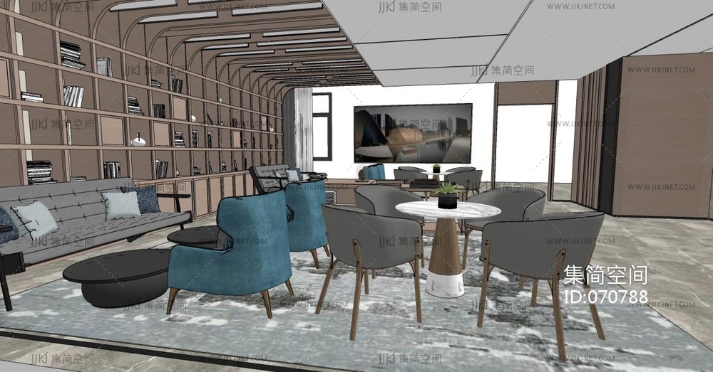 08现代办公休息区,异形公共座椅 (1)su草图模型下载