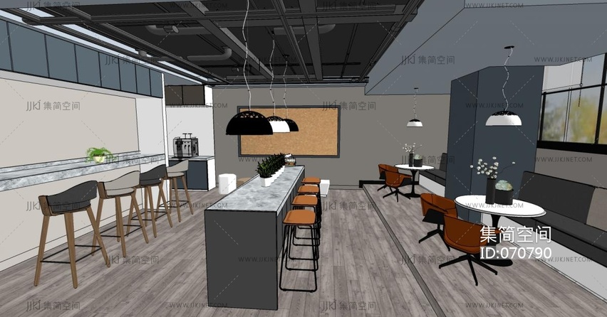 08现代办公休息区,异形公共座椅 (1)su草图模型下载