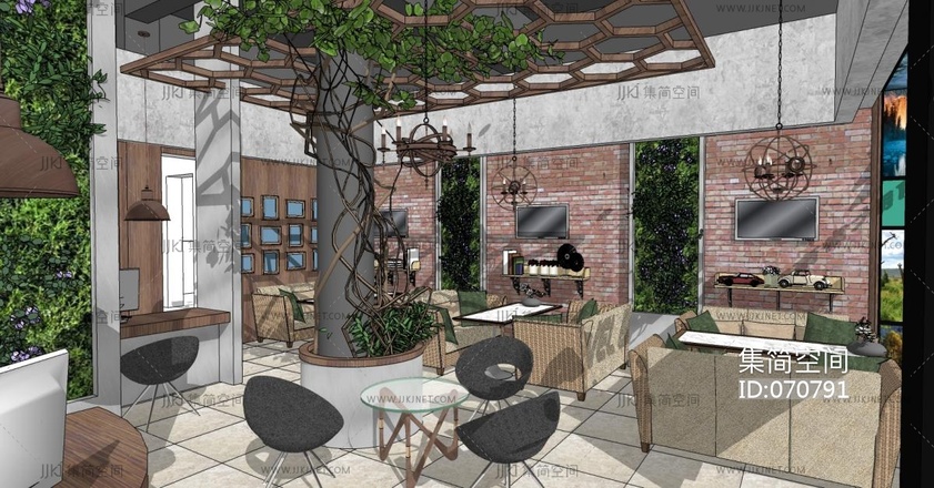 08现代办公休息区,异形公共座椅 (1)su草图模型下载