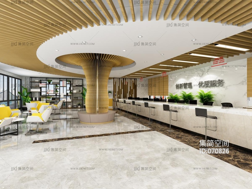 现代前厅接待厅3d模型下载
