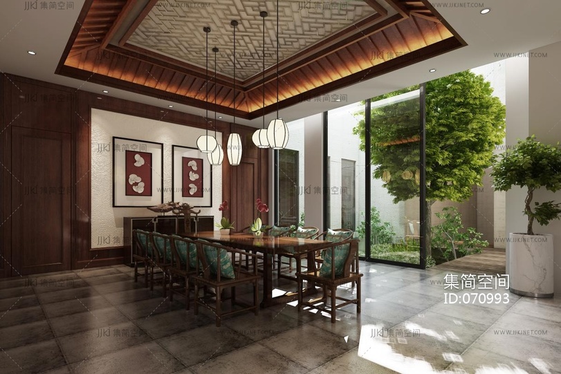 欧式古典餐厅古典雕花餐桌椅 3D模型3d模型下载