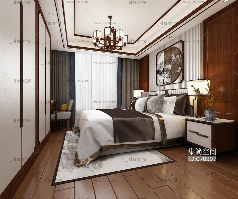 新中式卧室双人床床头柜 3d模型下载 [模型ID:70997]