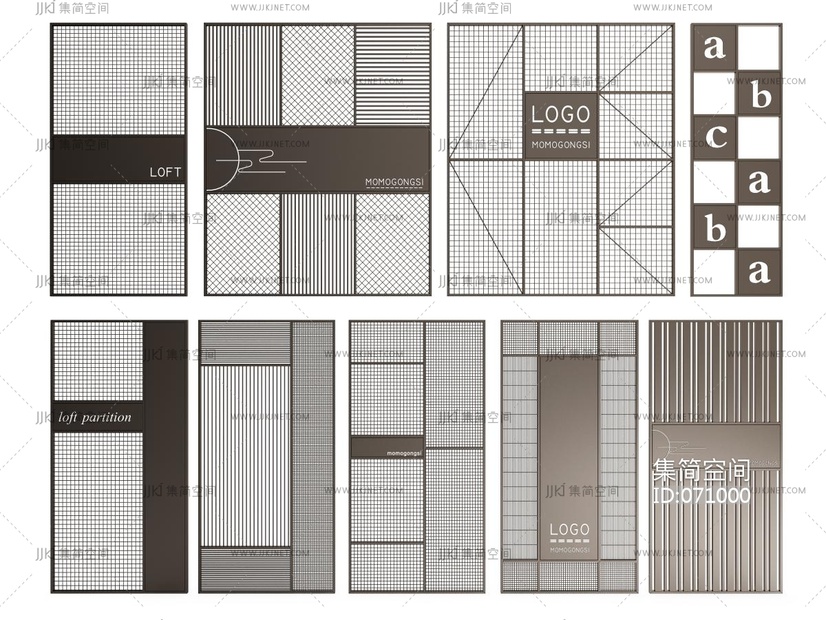 工业风格LOFT屏风隔断花格铁丝网推拉门 3d模型下载 [模型ID:71000]