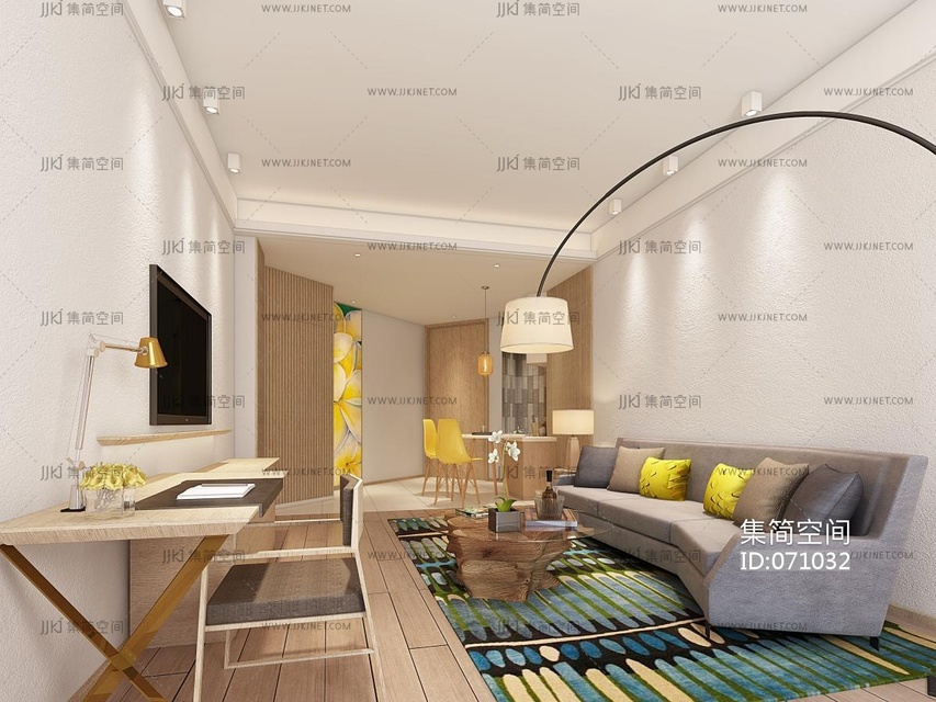 中古风客厅,美式客厅,圆形茶几,装饰画,移动电视,3d模型下载