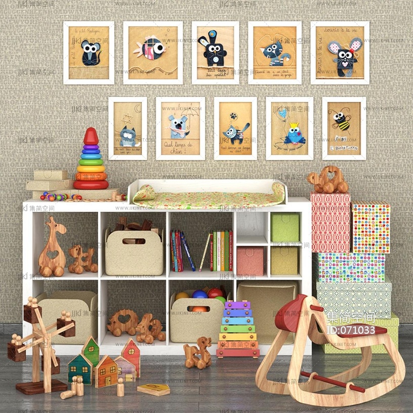现代儿童装饰柜,兔子玩具3D模型3d模型下载