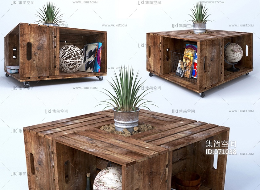 欧式茶几花瓶水壶圆形茶几法式茶几3D模型3d模型下载