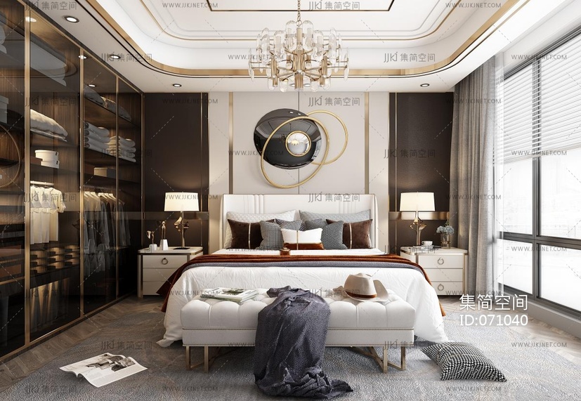 6法式中古家居卧室_主卧_飘窗卧室_高级灰卧室3D模型cr3d模型下载