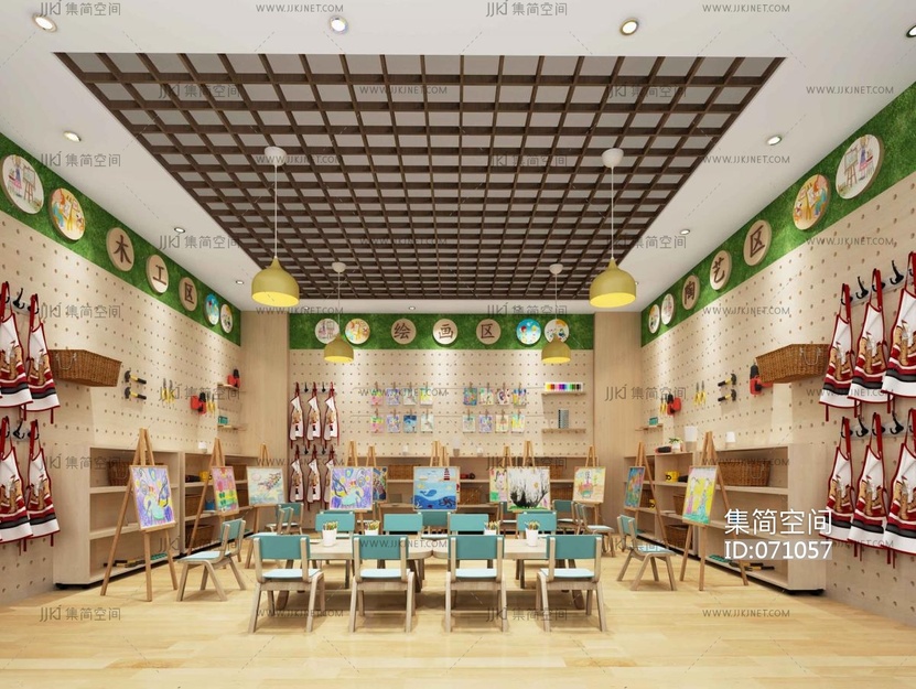 现代幼儿园,幼儿园活动室教师儿童区3d模型下载