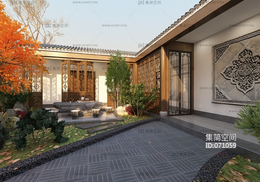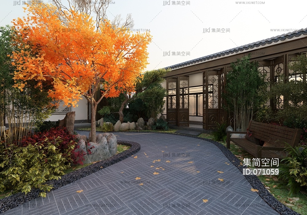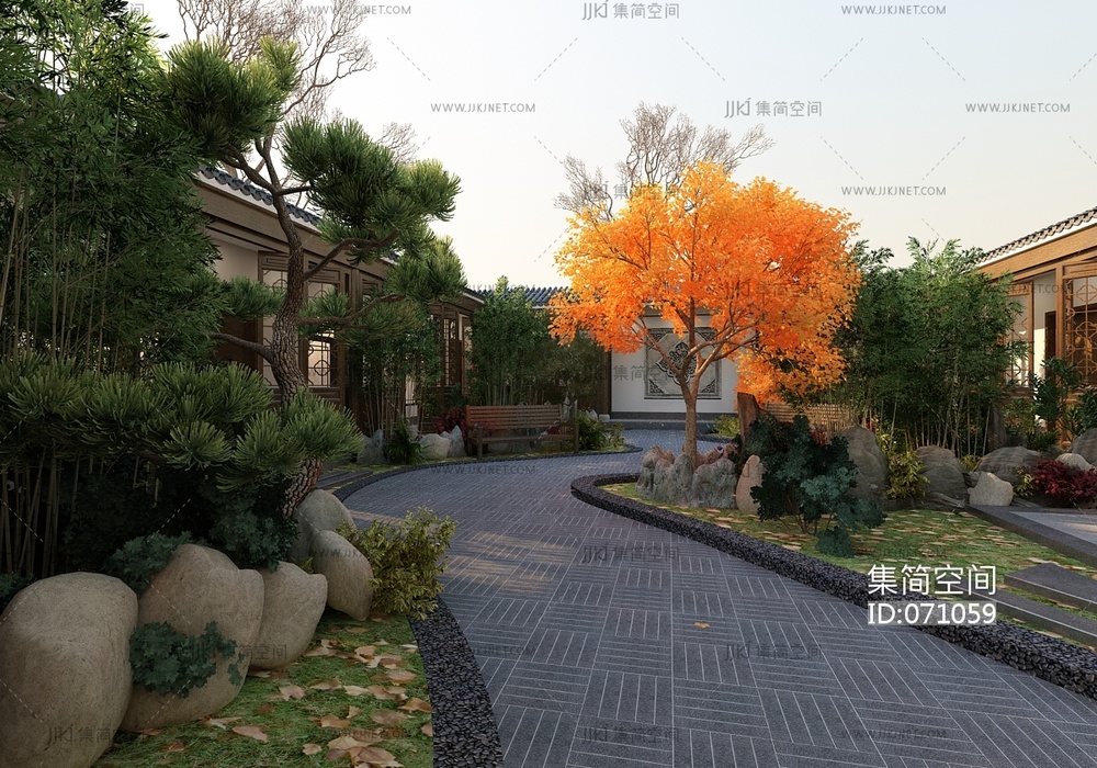 新中式景观庭院 3d模型下载 [模型ID:71059]