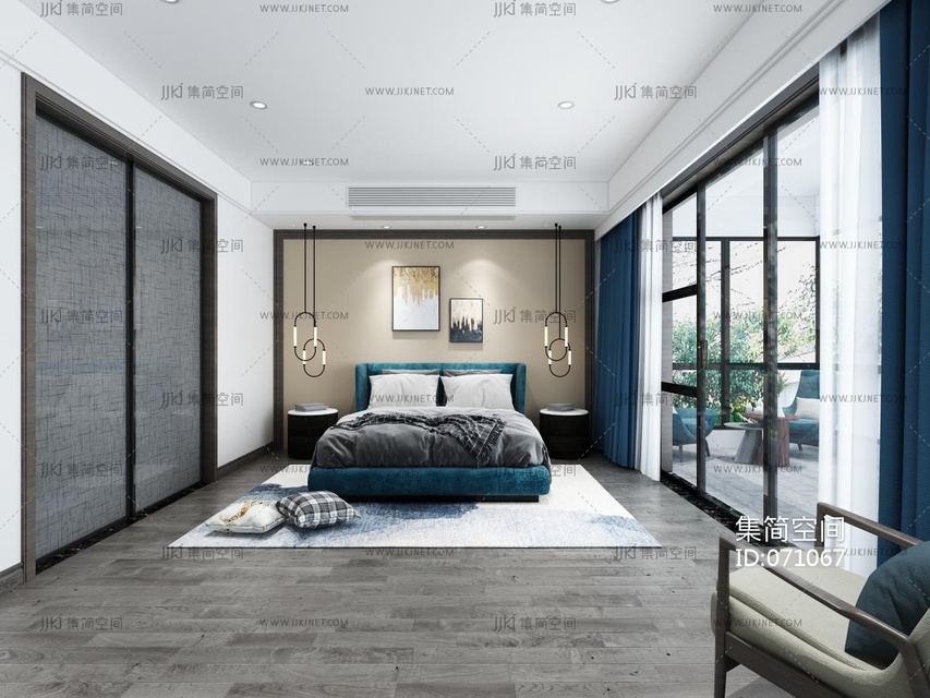 卧室,轻奢,暗黑风,现代轻奢卧室双人床,懒人沙发法式卧室3d模型下载