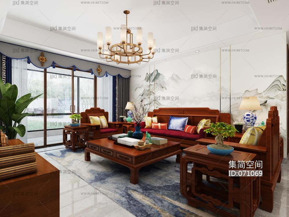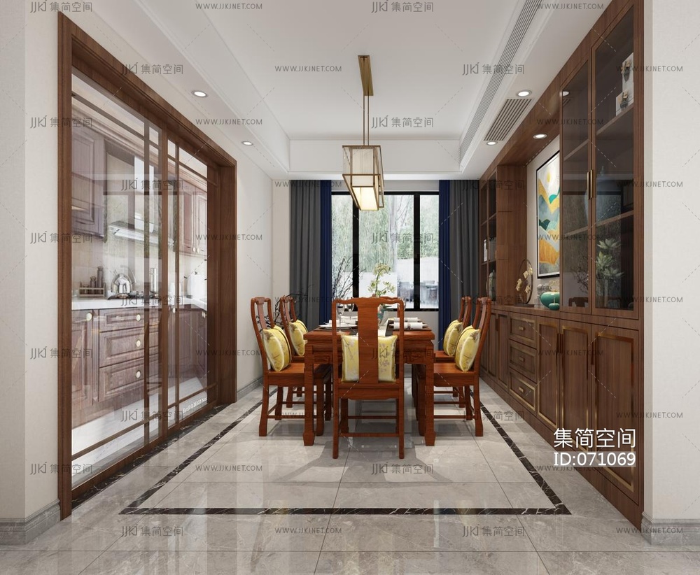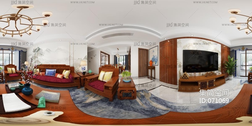 004-中式客餐厅全景 3d模型下载 [模型ID:71069]