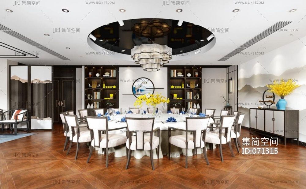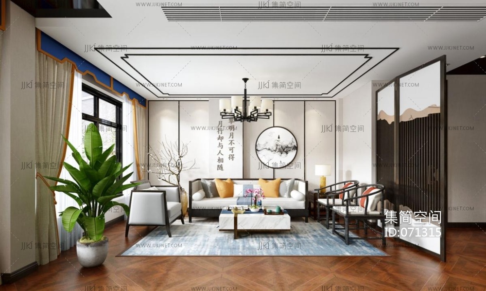 新中式酒店客房3d模型下载