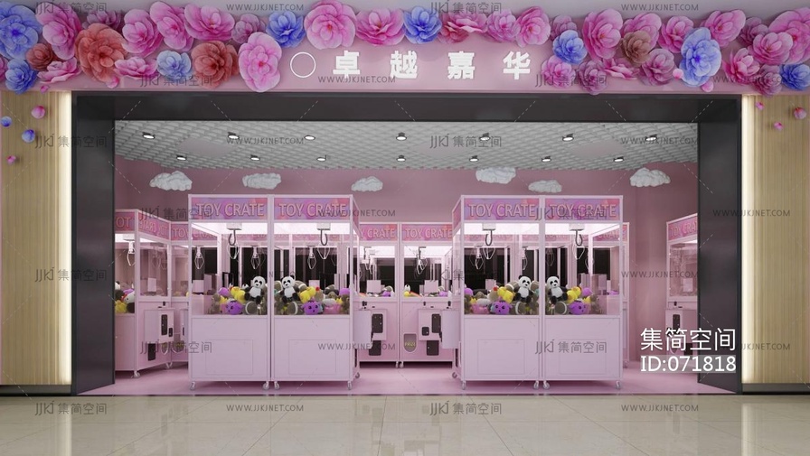 H02-0629现代网红店游戏厅娃娃机售卖车霓虹灯户外座椅路灯3d模型下载