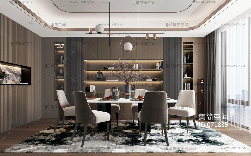 欧式古典餐厅古典雕花餐桌椅 3D模型3d模型下载