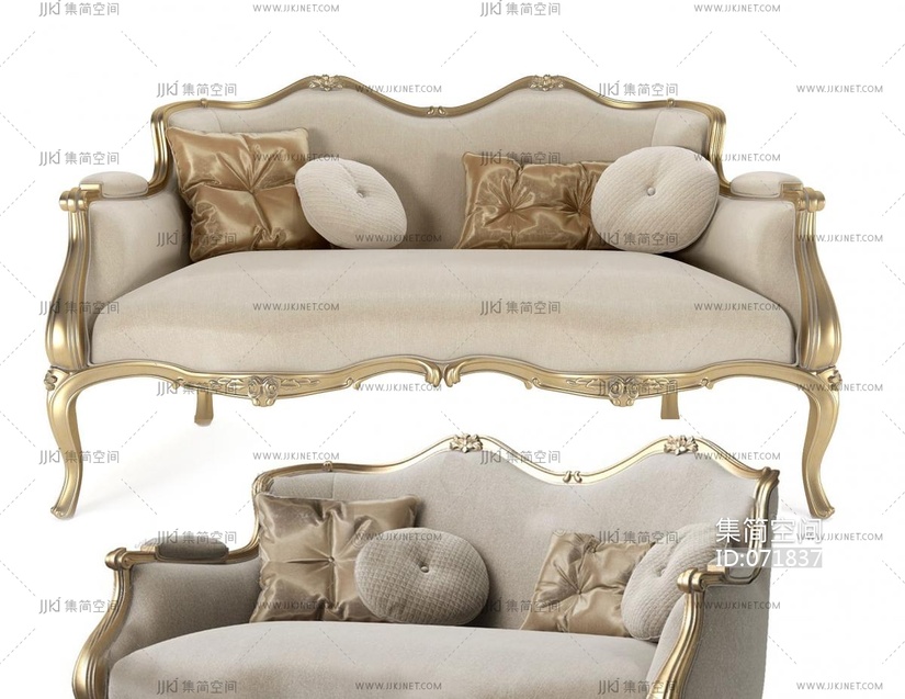 03-奶油中古沙发组合_沙发茶几组合_异形沙发_金属茶几_单人休闲椅_模块沙发3D模型3d模型下载
