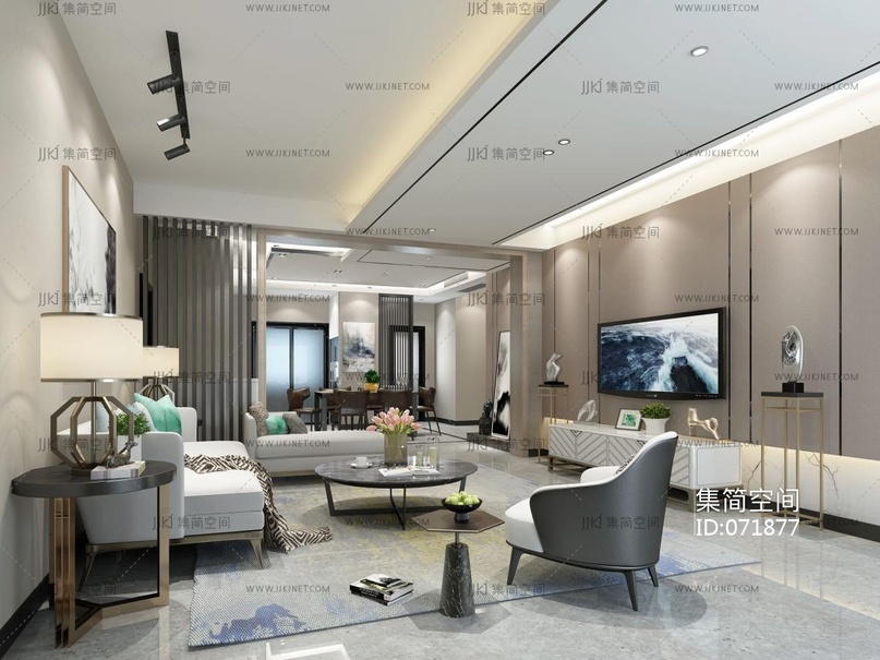 现代客厅 3d模型3d模型下载