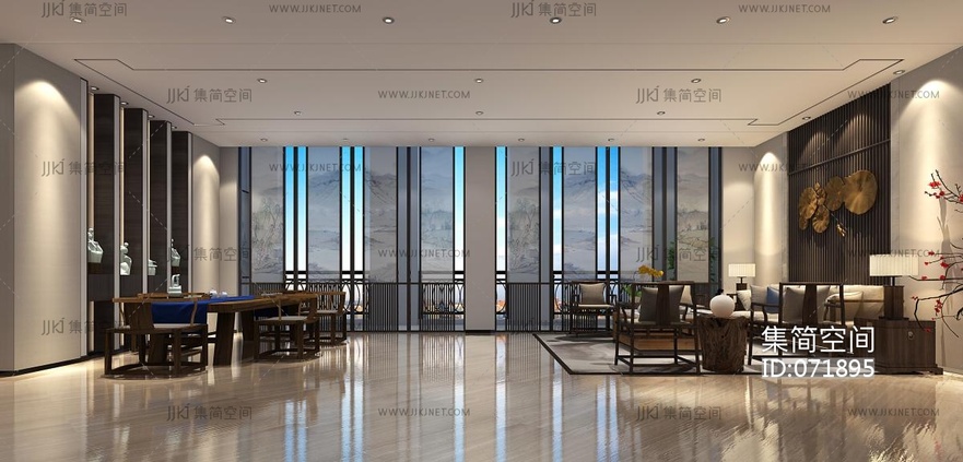 现代轻奢新中式接待室3d模型下载