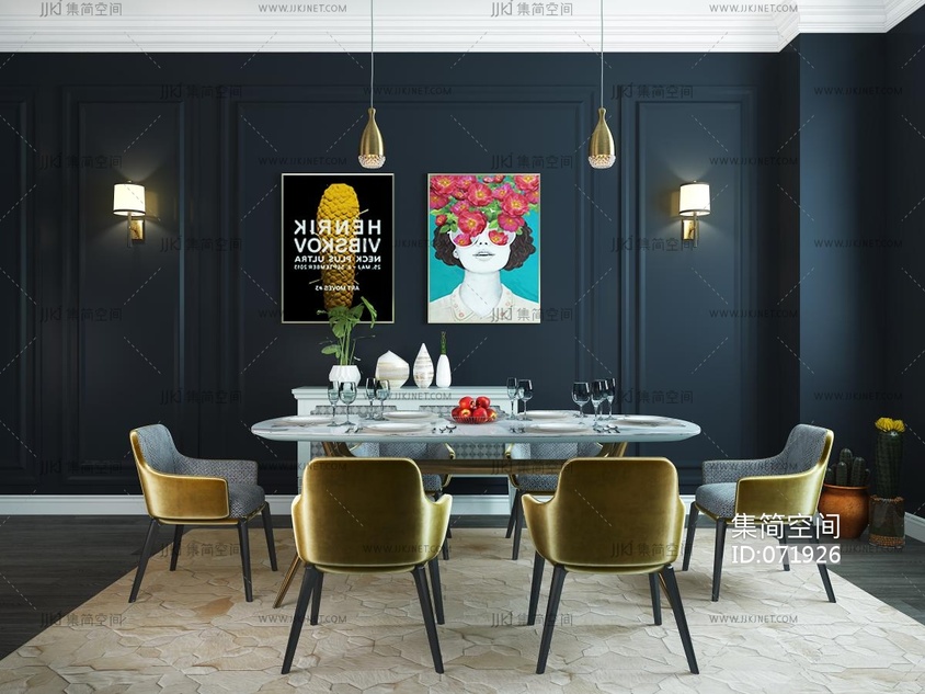 简欧现代轻奢餐桌椅吊灯 3d模型下载 [模型ID:71926]