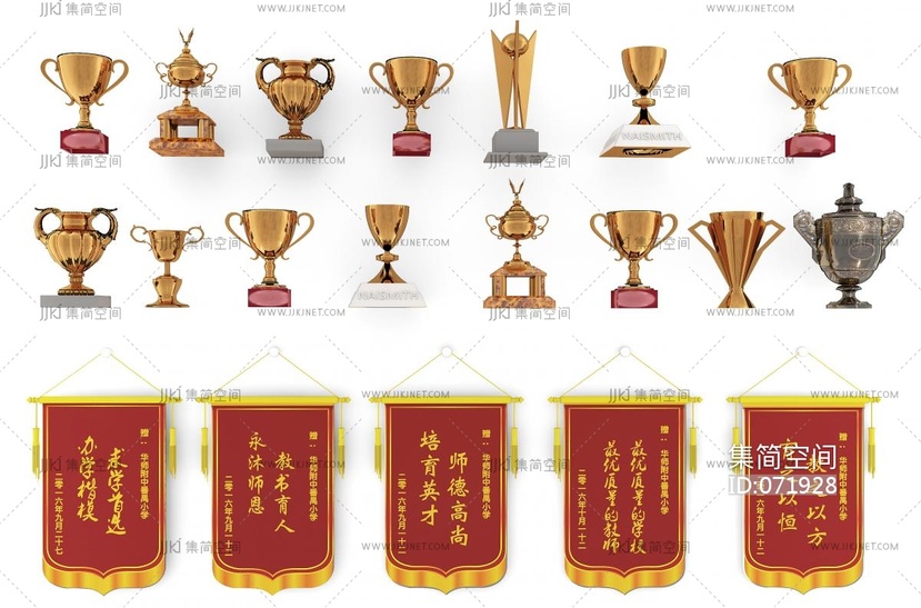 现代奖杯奖牌锦旗荣誉墙 3d模型下载 [模型ID:71928]