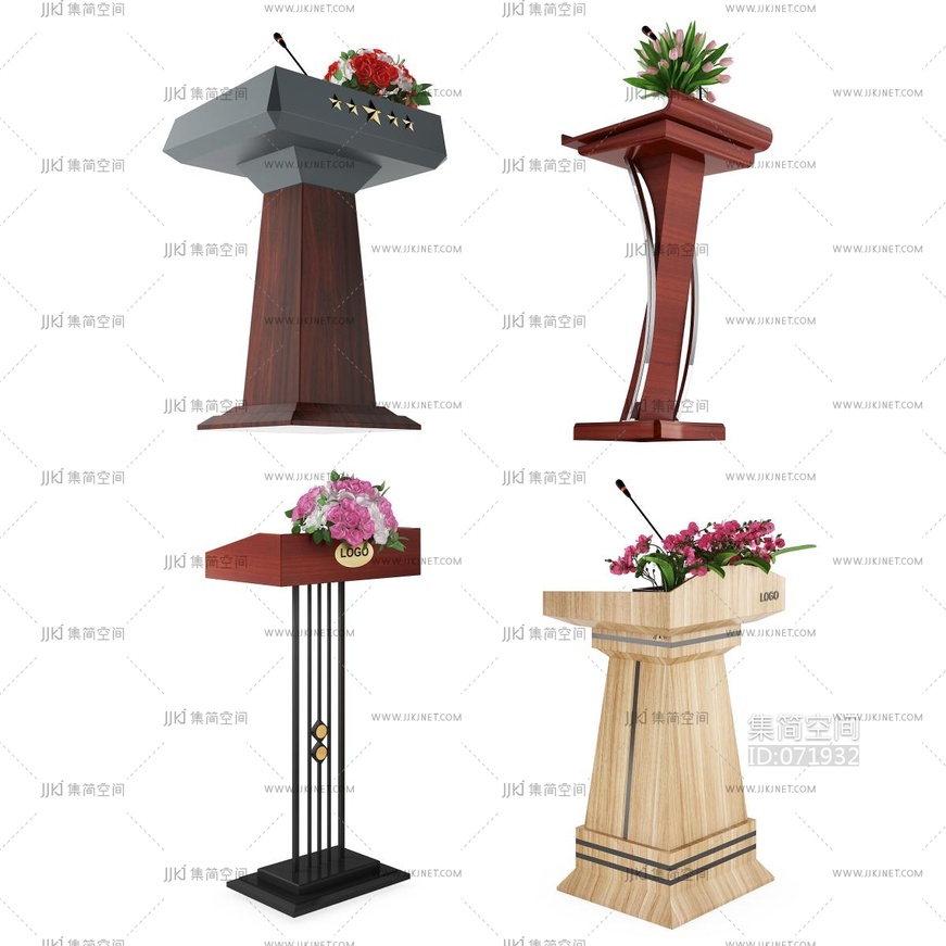 简欧式现代演讲台主席台新闻发布台话筒 3d模型下载 [模型ID:71932]