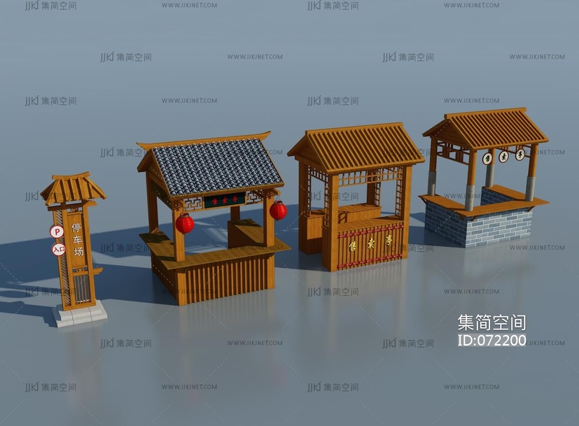 新中式售货亭摊位停车场指示牌 3d模型下载 [模型ID:72200]