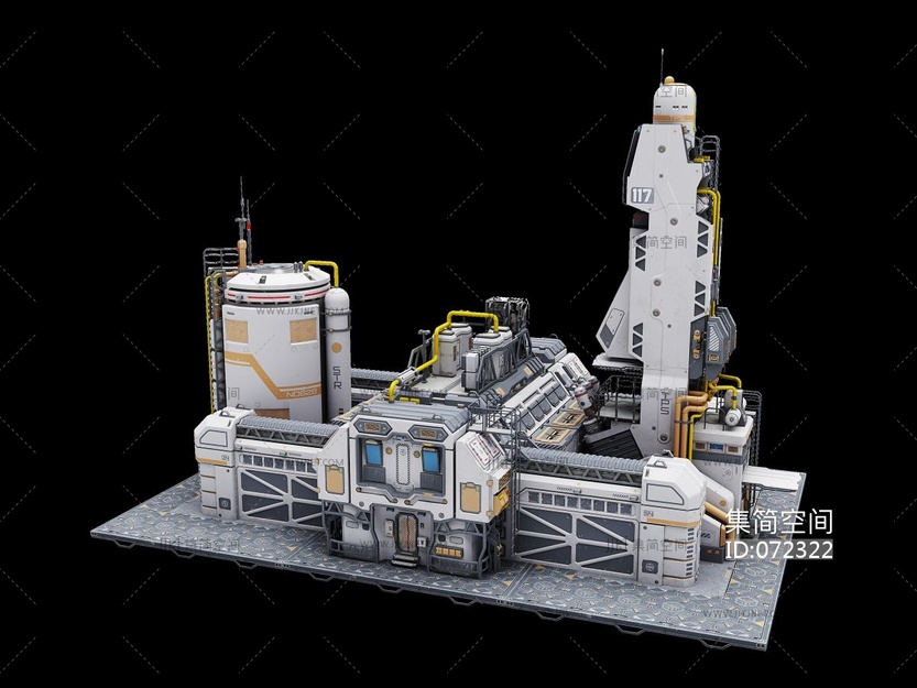 卡通宇宙飞船太空站场景 3d模型下载 [模型ID:72322]