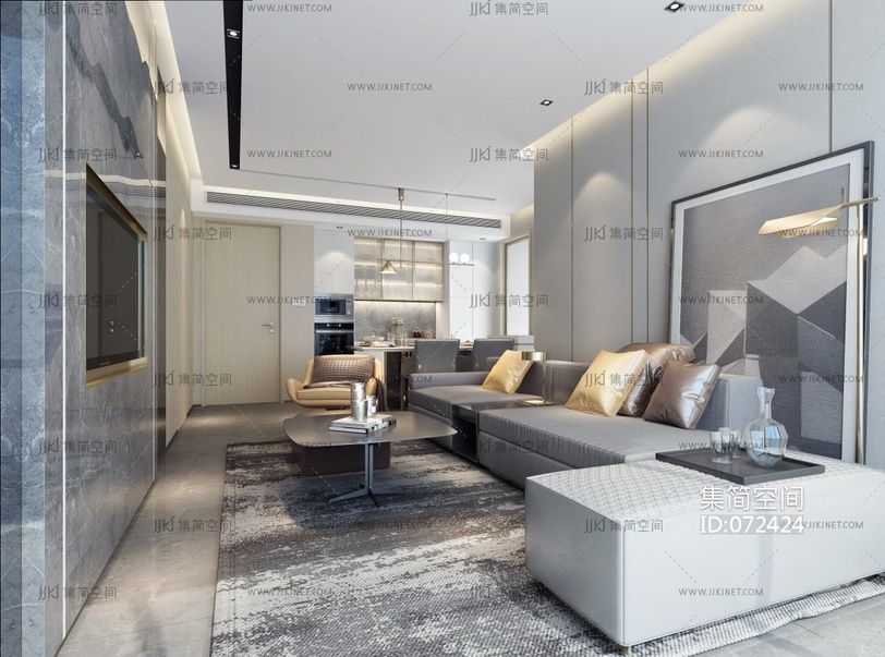 01现代简约客厅样板房 3d模型下载 [模型ID:72424]