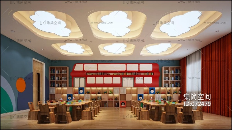 现代幼儿园,幼儿园活动室教师儿童区3d模型下载