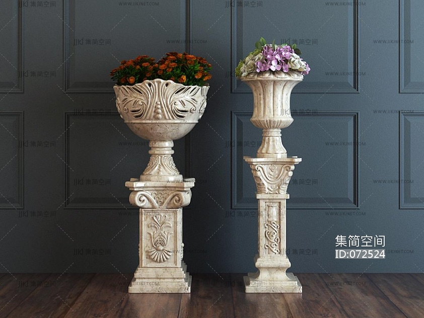 复古法式摆件组合_绿城玫瑰园会所_端景台_花艺_屏风3D模型3d模型下载