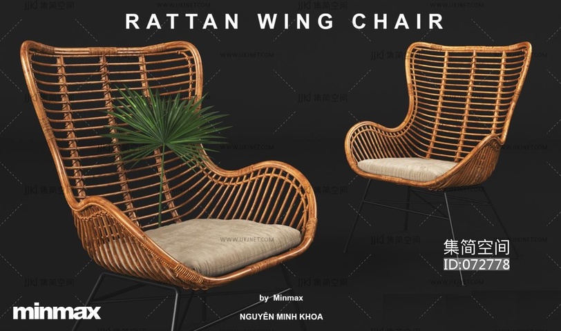 北欧藤编户外椅竹木椅子竹子椅子3D模型3d模型下载