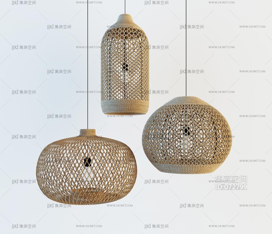 H05-1228东南亚藤编竹编席编编织灯笼吊灯 3d模型下载 [模型ID:72799]