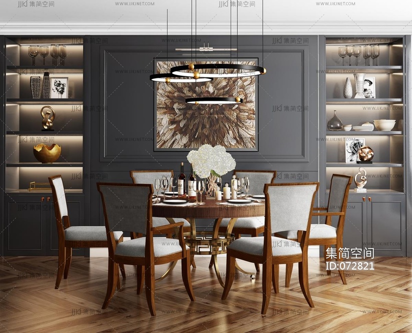 圆形餐桌椅组合 3d模型下载 [模型ID:72821]