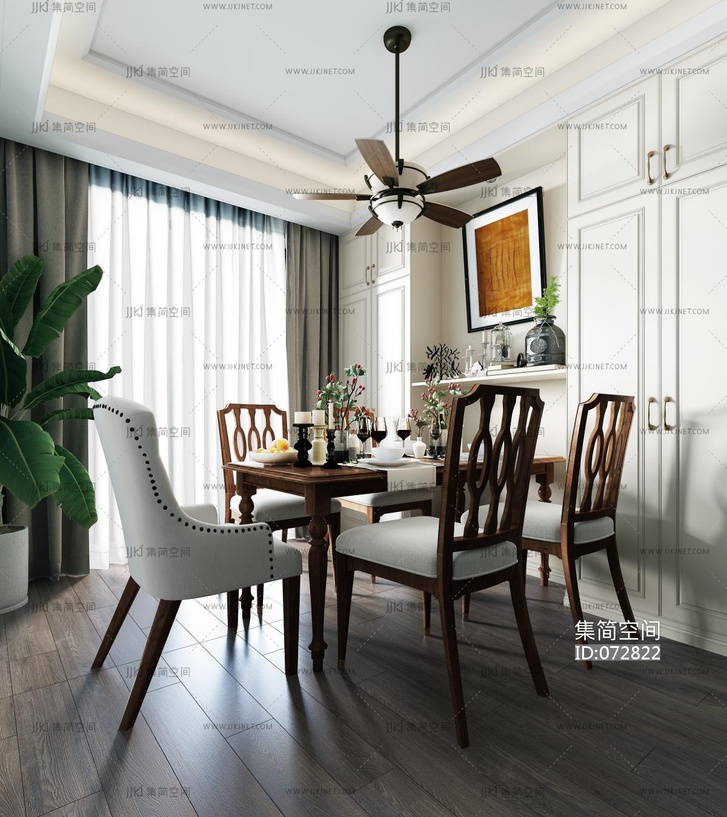 欧式古典餐厅古典雕花餐桌椅 3D模型3d模型下载