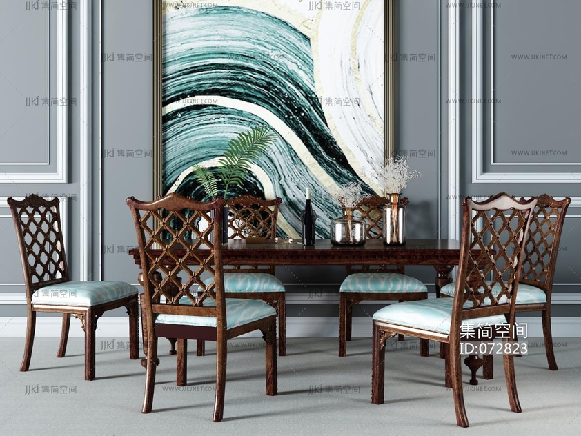 欧式古典餐桌椅组合3D模型3d模型下载