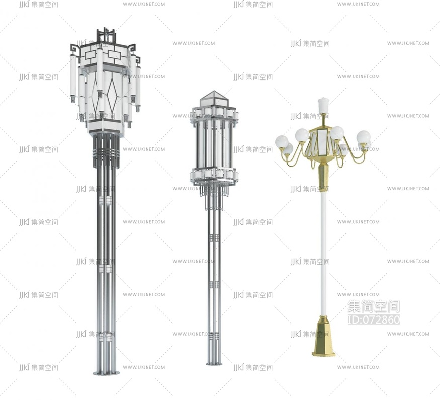 新中式铁艺草坪灯,落地灯景观灯3d模型下载