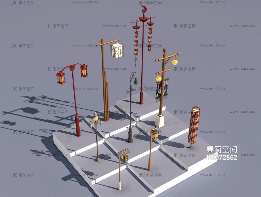 新中式铁艺草坪灯,落地灯景观灯3d模型下载