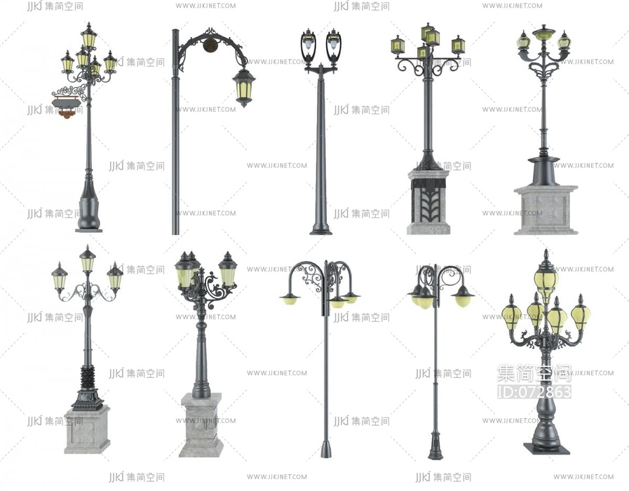 新中式铁艺草坪灯,落地灯景观灯3d模型下载