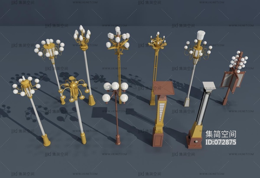 新中式铁艺草坪灯,落地灯景观灯3d模型下载