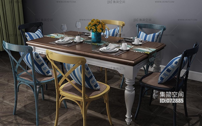 餐桌椅子组合 3d模型下载 [模型ID:72885]