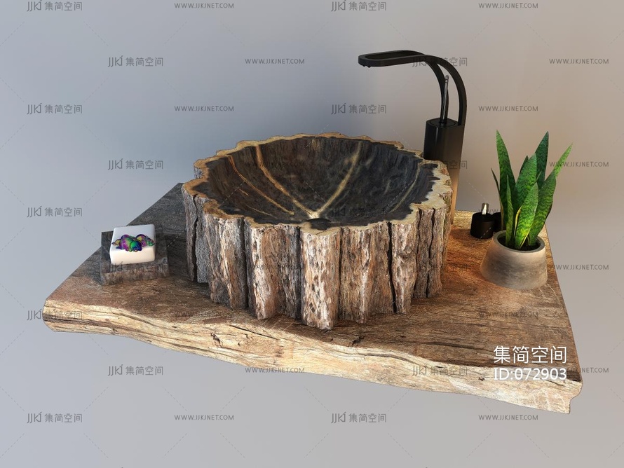 原木实木洗手盆 3d模型下载 [模型ID:72903]