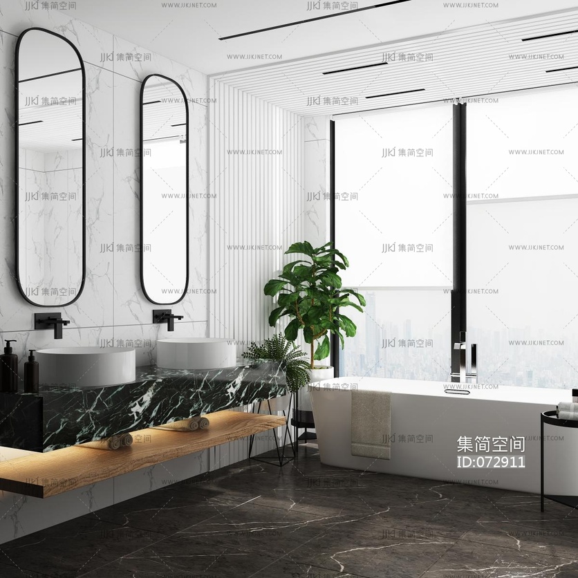 法式奶油风卫生间_洗手盆_马桶抽纸盒花瓶3D模型3d模型下载