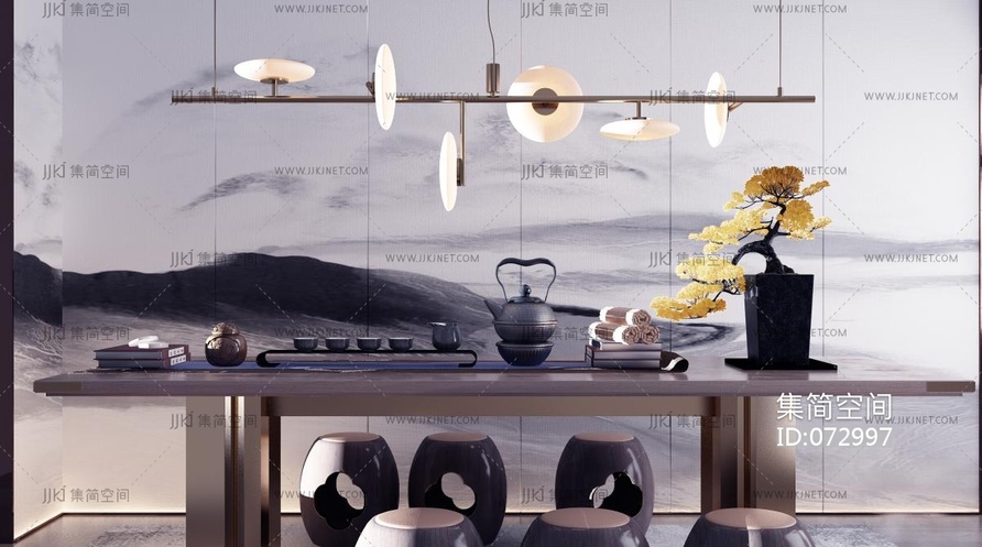 茶桌椅组合 3d模型下载 [模型ID:72997]
