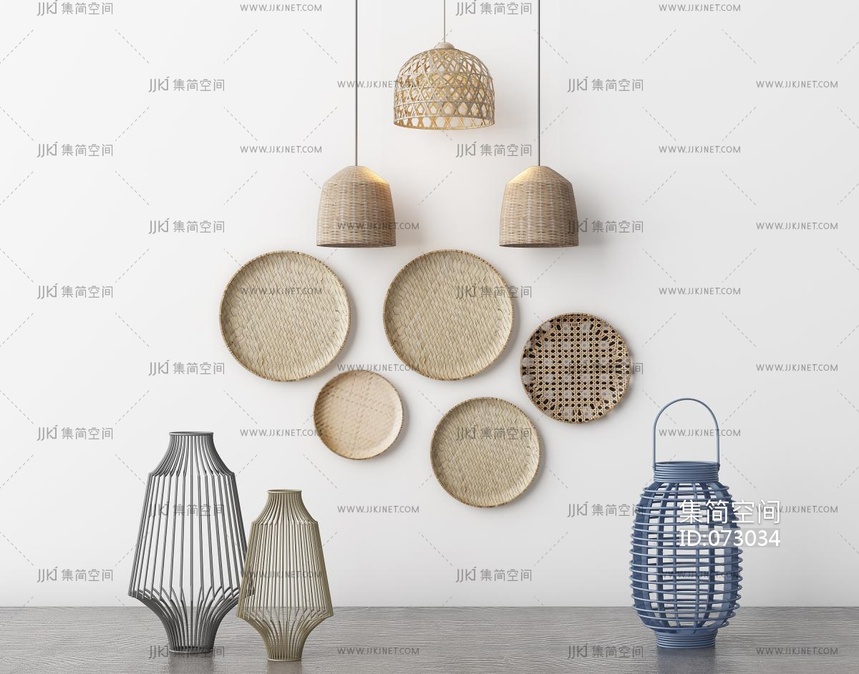 编织吊灯落地灯组合 3d模型下载 [模型ID:73034]