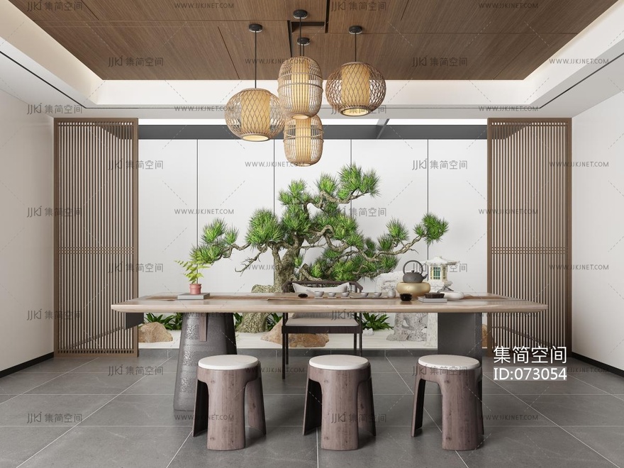 新中式茶室_ 3d模型下载